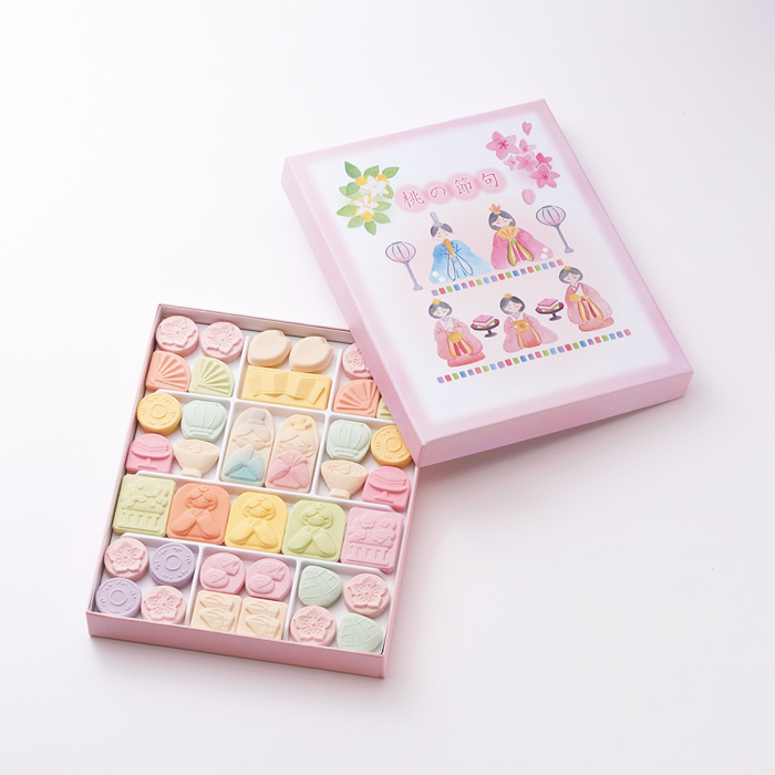 雛段飾りをイメージした華やかな和三盆の詰め合せです。健やかな成長を願って、年に一度のお祭りを華やかにお祝いしませんか。
