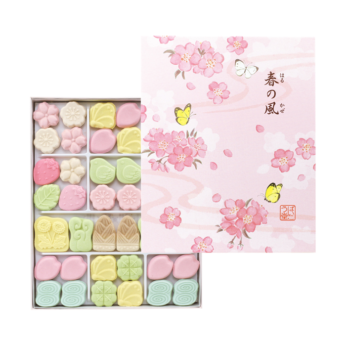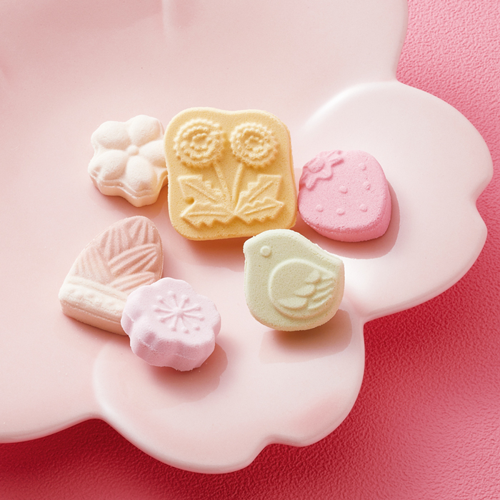 木々が芽吹き、色とりどりの花が顔を出し始める頃、柔らかな春の風が心地よく吹き抜けていきます。ふわりと舞う蝶、空気に混じる花の香り、遠くから聞こえる鳥のさえずりに心が躍るような美しい春色の和三盆をお楽しみください。