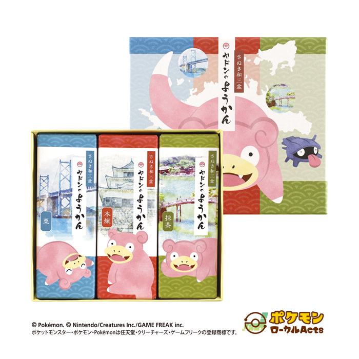 さぬき和三盆を使用した、ヤドン特製パッケージの食べきりサイズの羊羹です。かむと幸せな気分になるといわれるヤドンのしっぽの甘みをイメージしました。