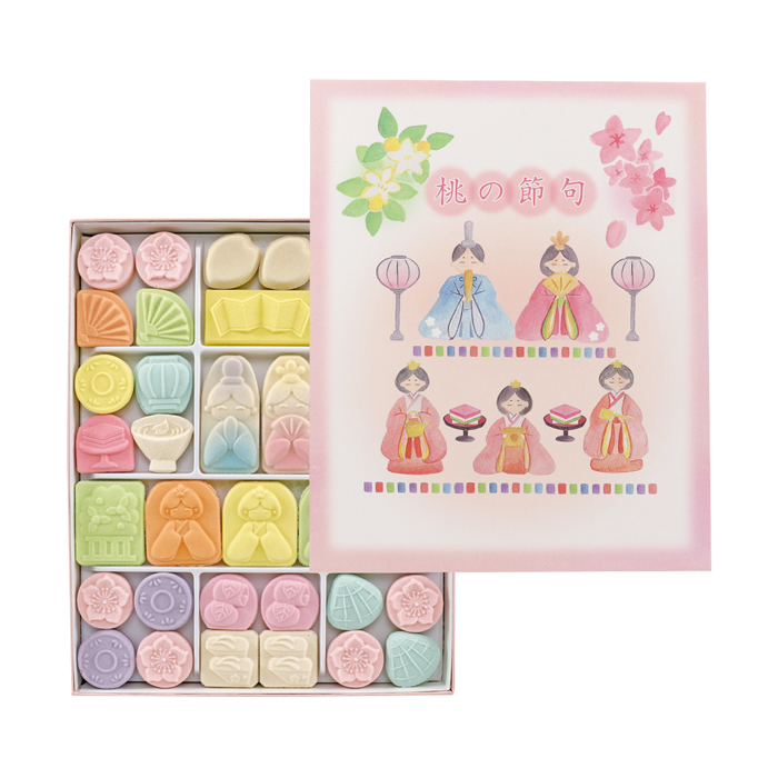 雛段飾りをイメージした華やかな和三盆の詰め合せです。健やかな成長を願って、年に一度のお祭りを華やかにお祝いしませんか。