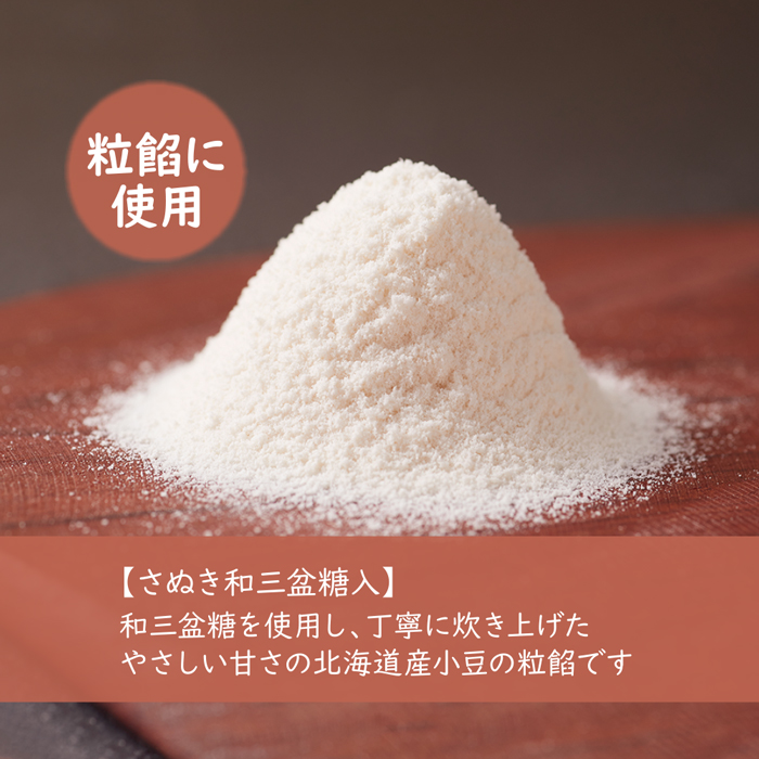 やさしい甘さの粒餡と和三盆糖蜜を入れて焼いた、茶褐色のしっとりとした生地が特徴の風味豊かなどら焼です。